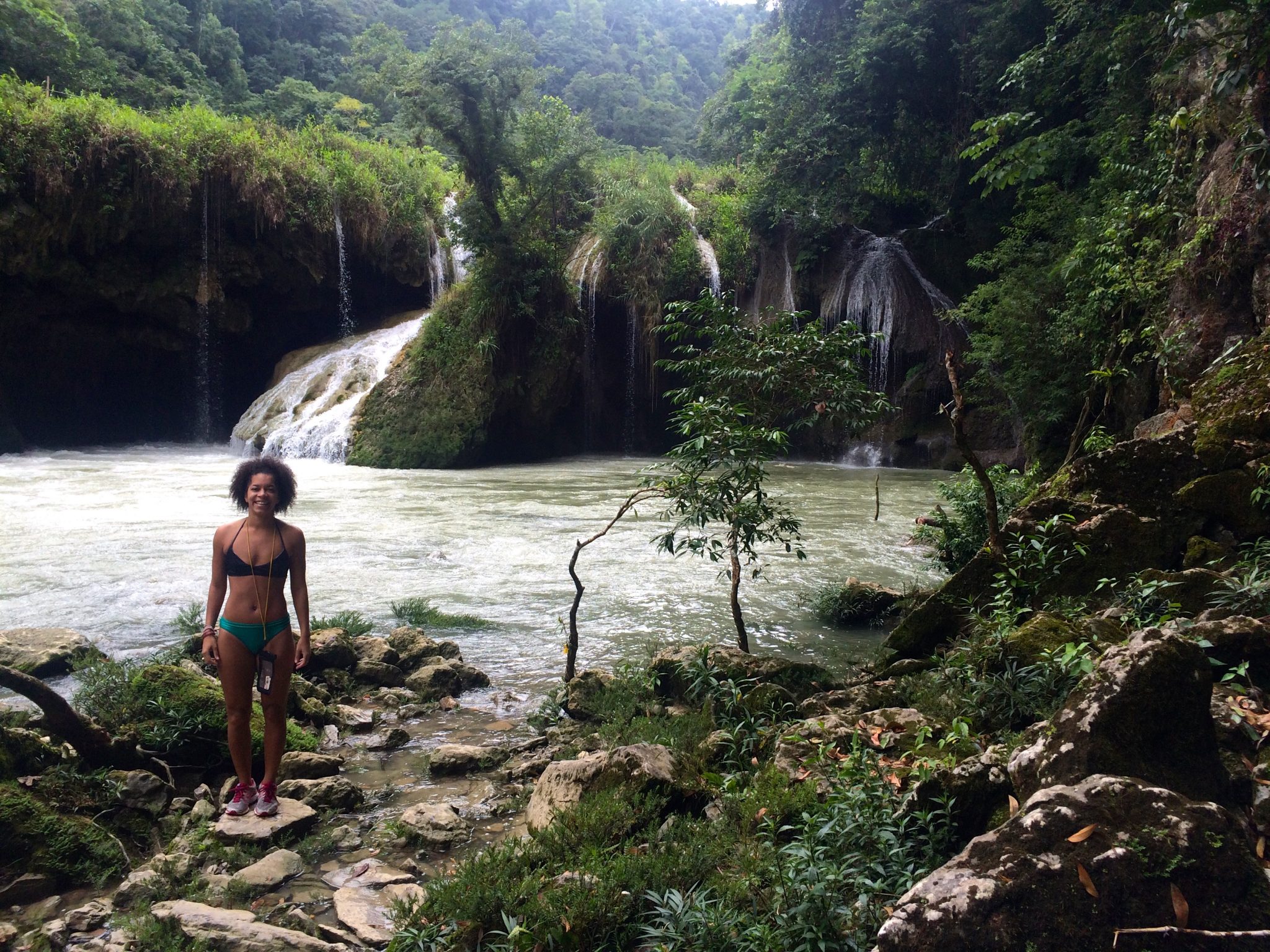 My current setting – rocking back and forth on a hammock, disconnected from the outside world, listening to rain pouring down. I just finished a fun filled day at Semuc Champey in Guatemala. I arrived at El Muro hostel in Lanquin after an 8 hour bus ride from Antigua. When I got to my hostel I was greeted by a free welcome shot. Soon after I realized there were only two other people staying at El Muro, but we ended up having a fun night with jenga, cuba libres, and laughs. Usually El Muro is a party hostel, but I was definitely a fan of this laid-back vibe.
